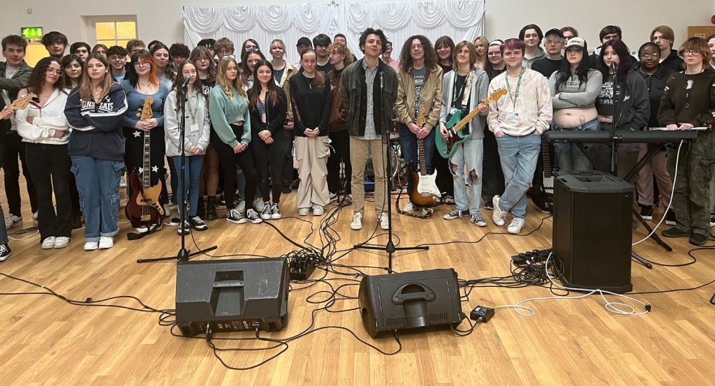 This week, the students came together for the first time to rehearse and perform their respective songs. Richard Taunton’s group presented their track titled Last Chance, while the St Vincent students performed Mistakes. Both songs explore the urgent issue of climate change and were written with support from Flanagan, who visited the colleges earlier this year.