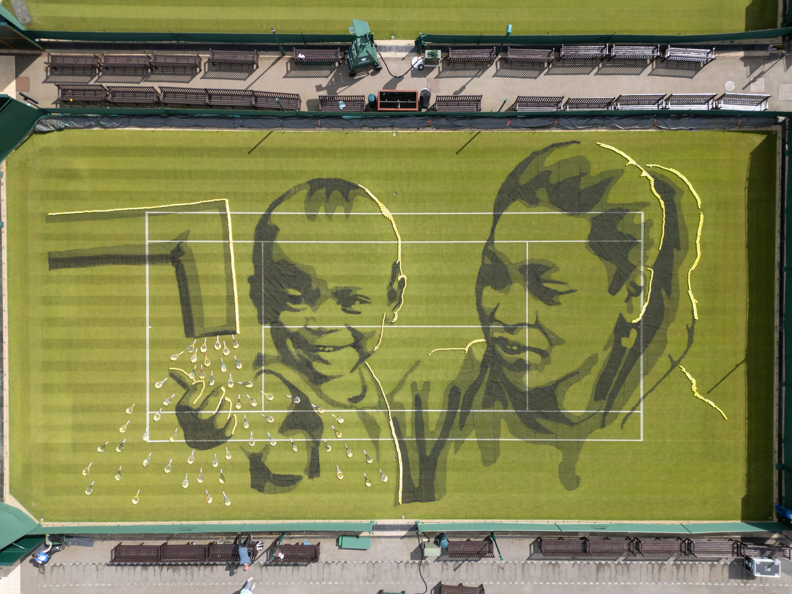 The tennis balls used in the mosaic were donated by Slazenger, the official ball supplier of The Championships, while the nets were provided by Edwards Sports. The rackets were loaned by Give It Your Max, a charity that supports children’s tennis programmes.